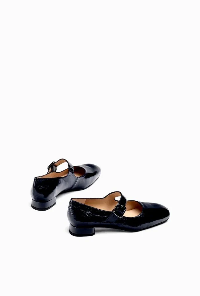 CULVER_VERSquare toe Mary Jane shoe made in patent leather. 2cm low heel in a matching tone. Strap over the vamp that can be adjusted with the metal buckle. Light, flexible, non-slip rubber sole. Available in various colours and materials. Which one is your favourite?