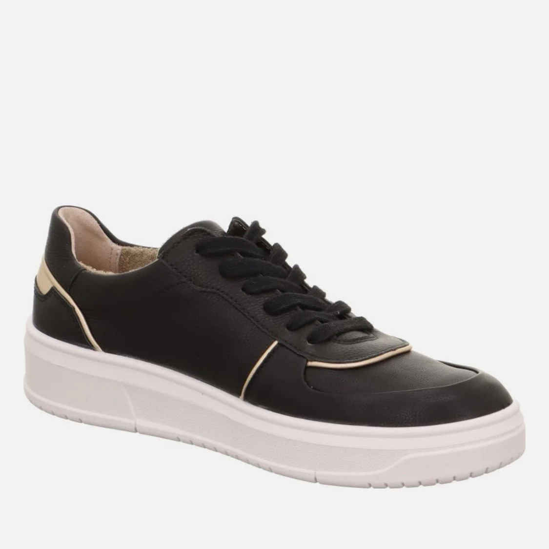 These REJOISE trainers have a distinctly sporty look thanks to the cleverly integrated leather detail on the toe cap. The meticulously crafted piping along the edges of the legero shoe also creates attractive contrasts. The trainers feature a particularly soft bamboo terry lining for comfort and a great climate for the foot. The stylish, slightly raised sole makes REJOISE the perfect companion.
